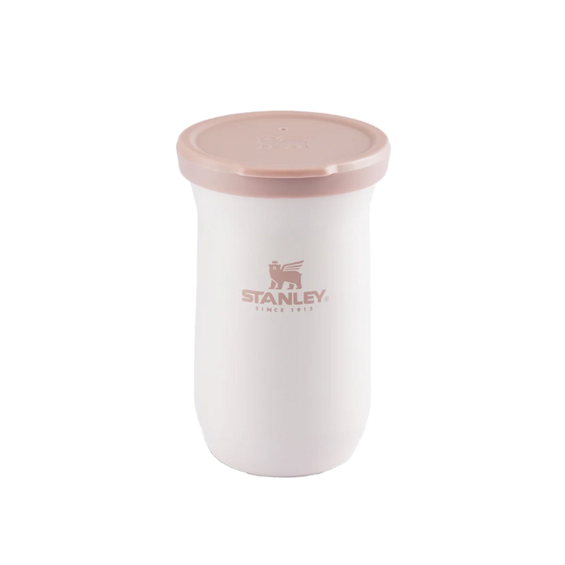 Mate de acero inoxidable, color rosa pálido, con tapa de goma.