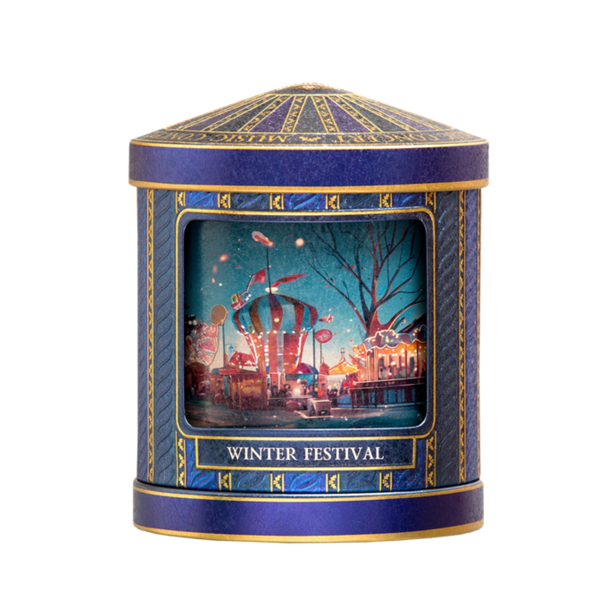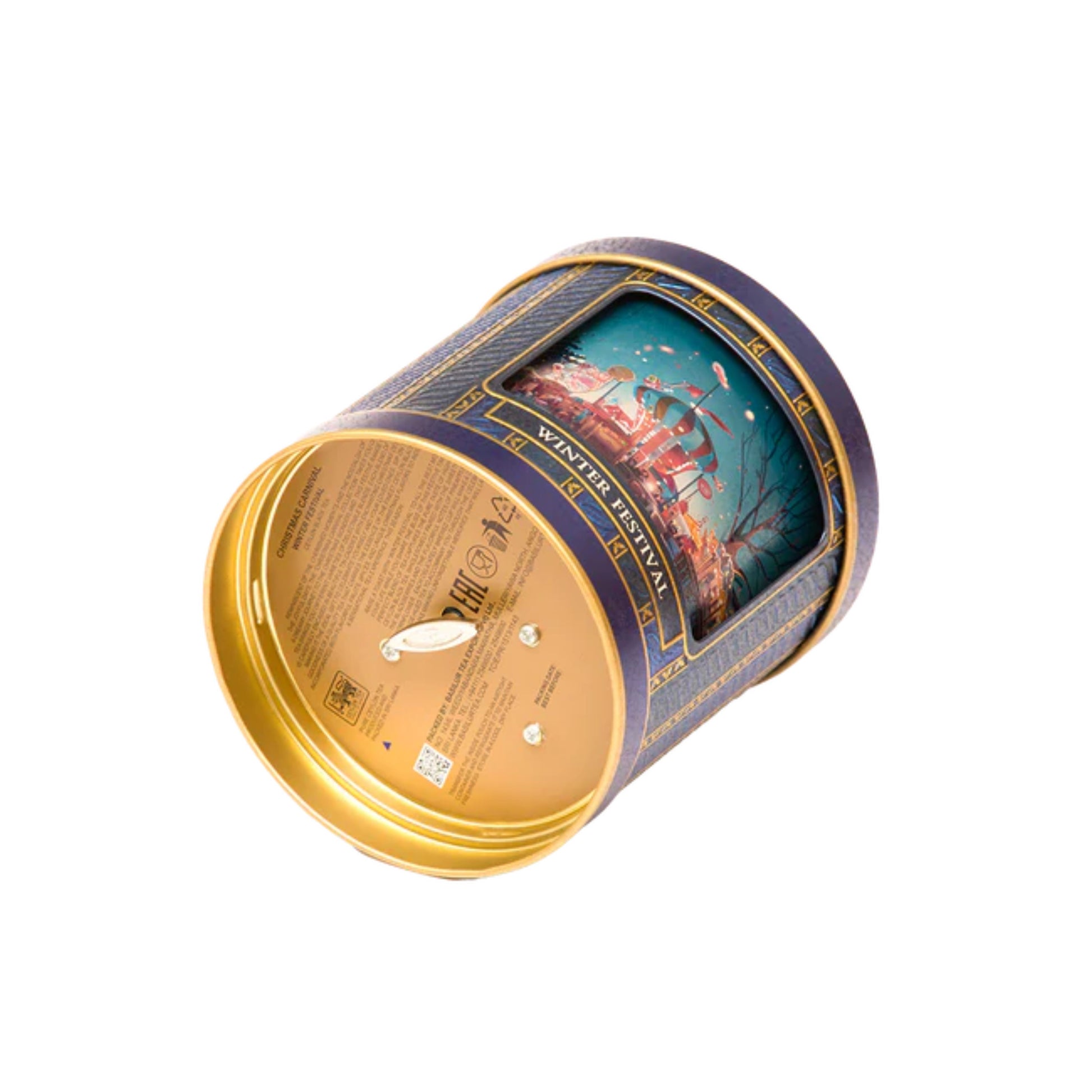La colección carnaval de Basilur trae el espíritu navideño en una elegante caja de té, que combina a la perfección con el té que contiene. Suena música festiva mientras la caja gira con gracia.