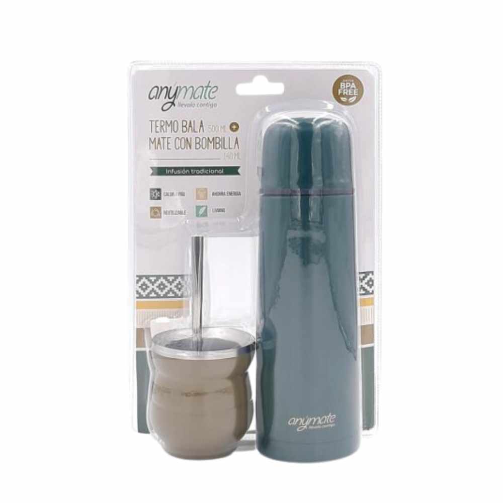 SET TERMO BALA 500ML + MATE CON BOMBILLA ANYMATE